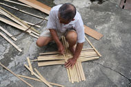 從黃師傅雙手異於常人的十指與孔武有力的胸肌,刻畫著近六十年執著本業之付出及辛勞。為了製作出好的蒸籠,黃師傅都親往竹山鎮挑選上等竹材,再經由劈竹、刨竹、鑽孔…等複雜過程,以手工方式一步步製作而成。 黃師傅認為製作傳統米糕、年糕、手工饅頭等業者,秉持使用手工蒸籠的主因是能保留香氣,而且水蒸氣外散快,不會像白鐵蒸籠凝聚過多水分而影響口感。